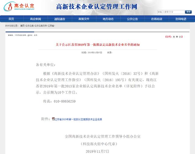 江苏省2019年第一批拟认定高新技术企业名单评选是根据《高新技术企业认定管理办法》(国科发火〔2016〕32号)和《高新技术企业认定管理工作指引》(国科发火〔2016〕195号)有关规定,为扶持和鼓励高新技术企业发展,对科技型企业特别是中小企业加大政策扶持,推动大众创业、万众创新,培育创造新技术、新业态和提供新供给的创新型科技企业,促进经济升级发展,是经国务院批准实施的。