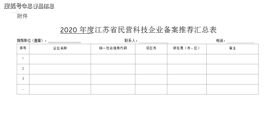 江苏省民营科技企业备案推荐汇总表(样式)